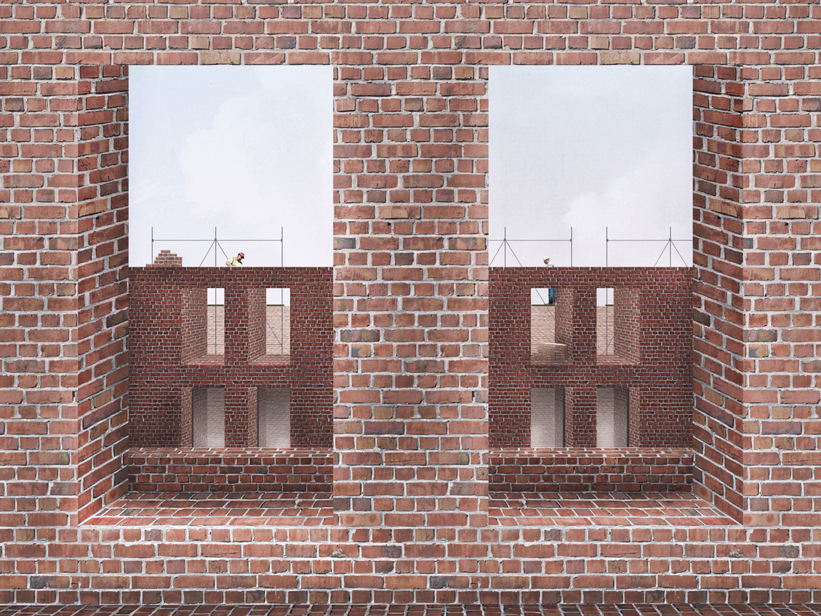 This proposal is a brick factory whose output of material and labor produces the building - artist studios - around it. The driving concept is for a building that removes itself to the extent possible from the money economy. This is manifested first in the physical production of the building, through a material distribution and delivery system that sources materials in their most local and raw form. Therefore, the predominant material is brick, each component part of which is still mined within fifty miles of the site, and its production can be lo-tech and labor intensive. The labor strategy involves 108 artist/laborers working at the site/brick factory at different times, physically producing the building over the course of five years, exchanging their labor for the termless use of space ratable in size to their contributed labor. What seems at face value as the least realistic of the proposals, having a clear semblance to a modern day Phalanstery, is brought into the realm of possibility by the fact of the zoning bonus for community facilities, and location in a manufacturing district that is simultaneously a growing retail corridor. The existence of the latter means that the ground level retail as the building’s only revenue can support and pay for the building’s construction and long-term maintenance.